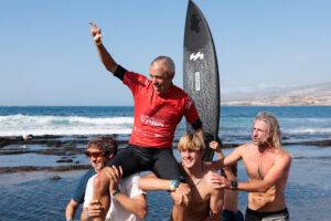 R: El objetivo es revalidar título en +50, siendo consciente de que en el surfing cualquiera puede eliminarte si fallas o no te cuadran las olas. También competiré en +40 porque surfear Las Palmeras con tan poca gente es un privilegio. Ahí también intentaré ganar, aunque me conformo con llegar a la final porque los “jóvenes” de +40 vienen fortísimos. Este campeonato lo disfruto muchísimo. Si hay olas, quiero pasar mangas solo para surfear más.